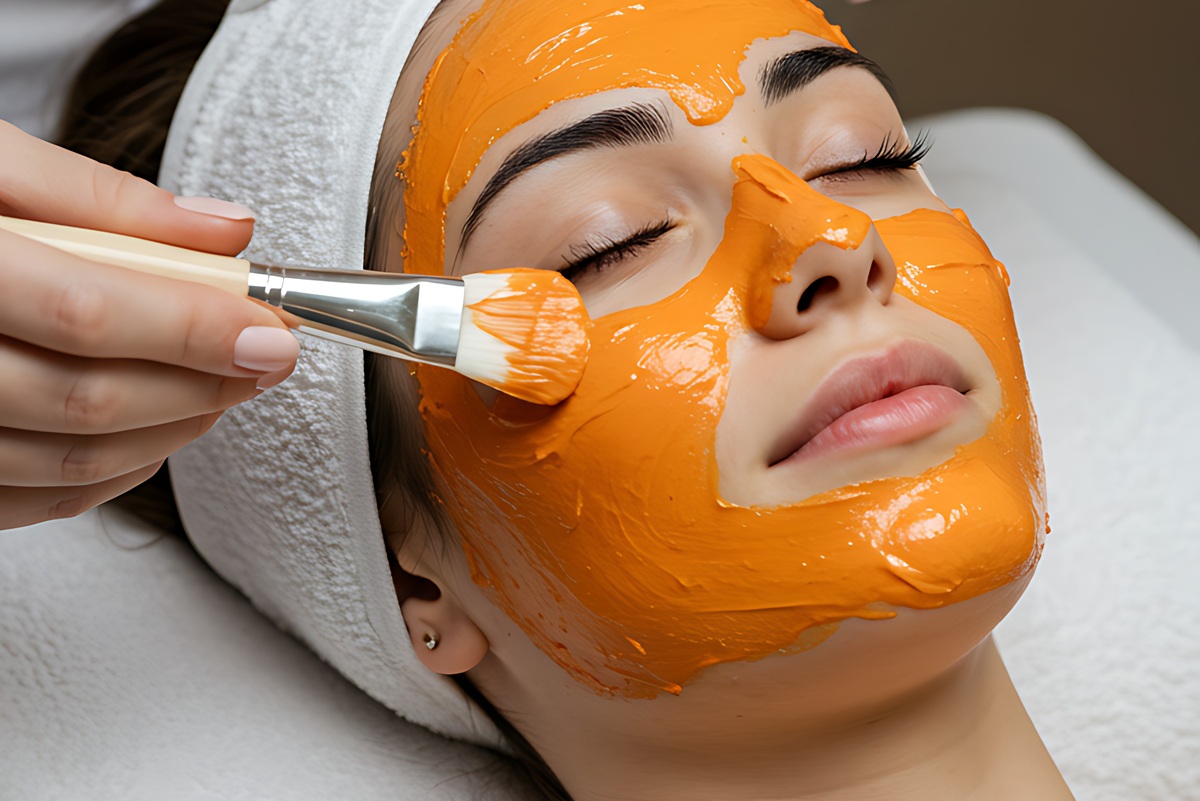 The skin is initially cleansed to eliminate makeup, impurities, and excess oil, optimizing the conditions for the pumpkin enzyme to perform effectively.